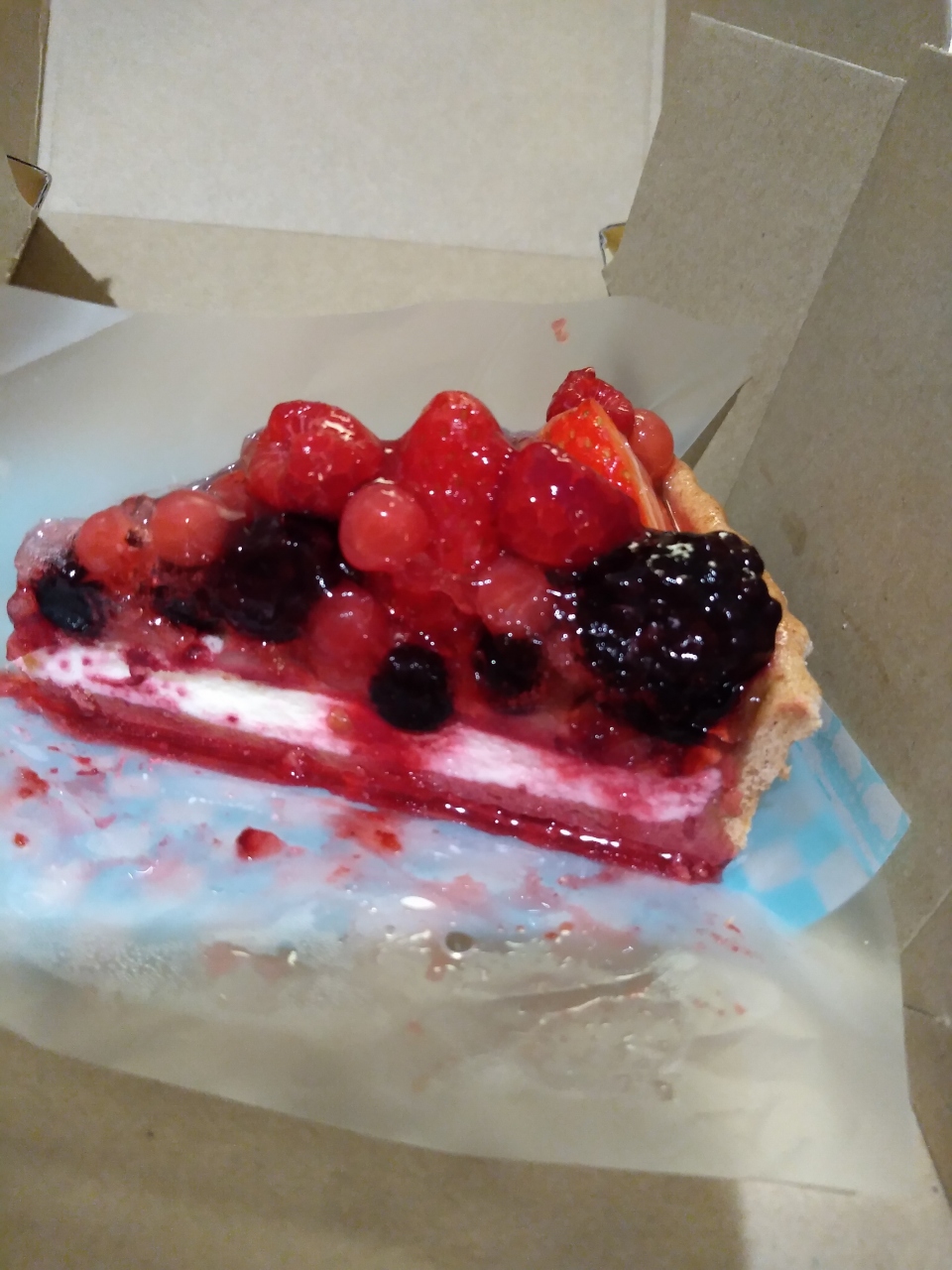 赤いフルーツのタルトをテイクアウトで。本当は席で食べたいかなともおもったが、地下で午後なので、混んでいてもコロナ対策として困るので。(地下だと様子がわかりにくいですよね)他がかわいくて、ケーキおいしいが、フォークがついてなくて、仕事の関係でホテルとまっていたので困った。