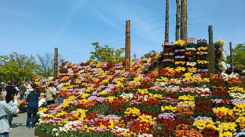 コロナが比較的少ない地域のため、多くの観光客で賑わっていました。色とりどりのチューリップはとても綺麗です。公園の規模はそれほど広くないので1時間くらい散策すれば十分だと思います。あまり暑い日は老人向きではありません。