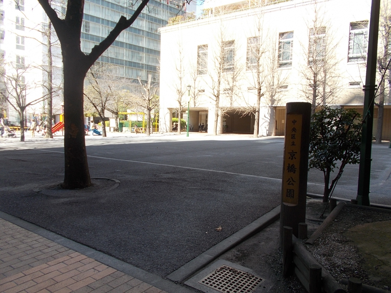この京橋公園はかつての楓川河岸にある公園です。そのためか公園の一角に蜊河岸の説明板があります。地下鉄都営浅草線室町駅から南東に10分程度の場所にあります。公園iには中央区観光協会がはいいっている京橋プラザ区民館があります。公園は親子づれがたのしんでいます。