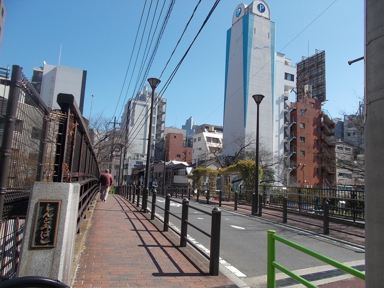 この新富橋は今はもとの楓川を利用した高速道路にかかる橋になっています。地下鉄都営浅草線室町駅から南東に10分強の場所で近くには京橋公園があります。新富橋は今はコンクリート造りです。橋の脇には公園が整備されています。