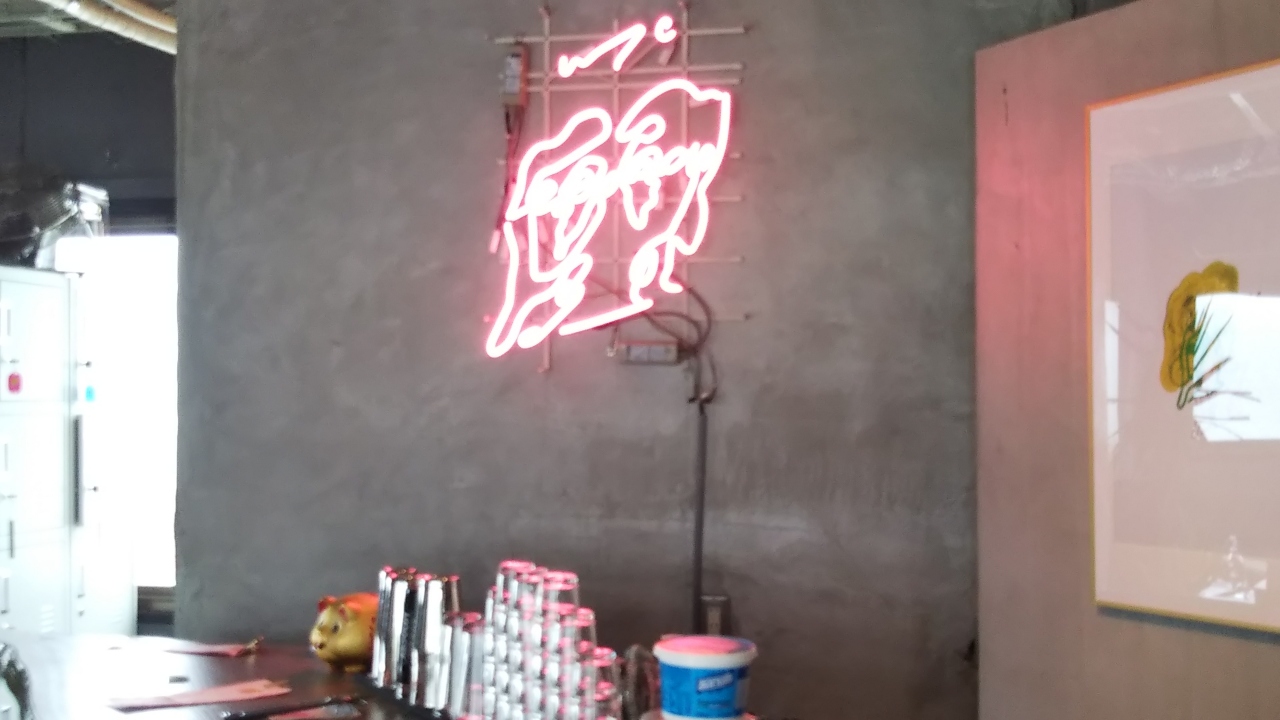 店内は建屋コンクリを化粧パネルで隠さないガレージデザインで、カウンターやショップサインなどが、雰囲気が良い。曲もこういう若者向けのお店の割には派手じゃないセンスの良い曲が流れているので、より良い雰囲気。自分が良く行くメルボルンなどで見たお洒落な感じ!