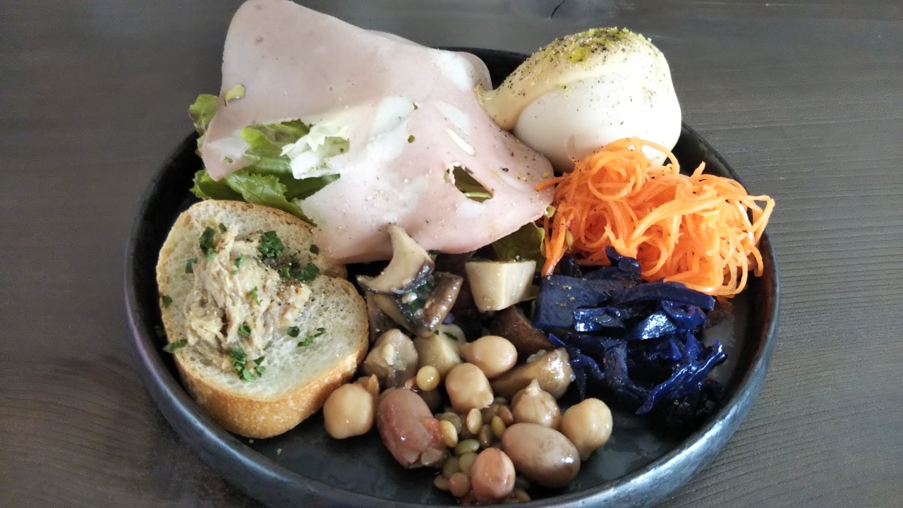 オーダしたのは、ランチセット(しかない)で、鶏肉、魚、牛ステーキから