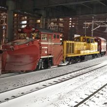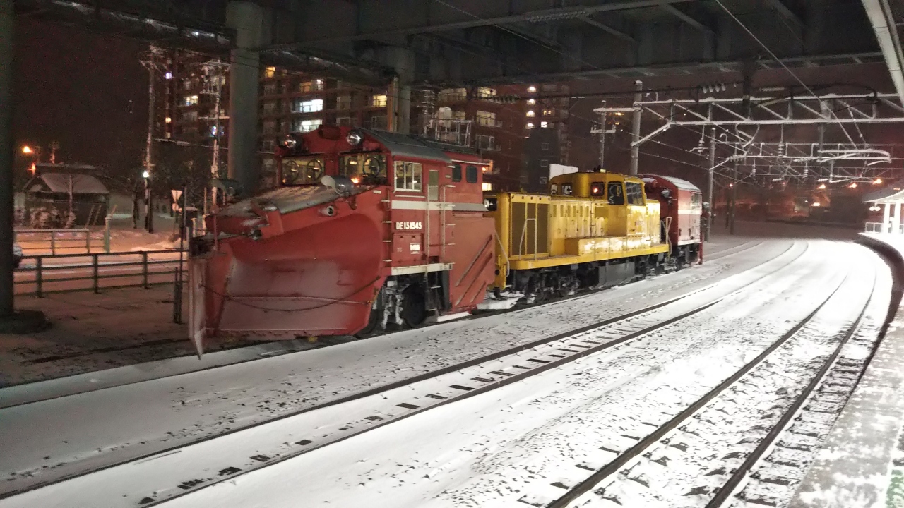 個人的には廃線となった手宮線側との分岐の様子を見たかったのですが、吹雪に近く良く見えず、帰りは止んだものの夜で照明も無いので全く見えずで残念。