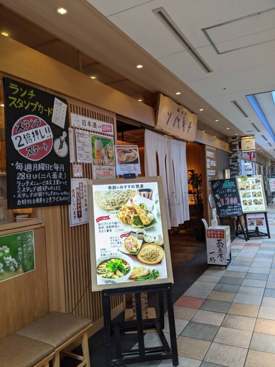 金山駅と直結の「ミュープラット金山」のレストラン街にあるお蕎麦屋さんです。お蕎麦屋さんと言っても居酒屋のような雰囲気があり、ハッピーアワーなら生ビールなどが330円とお得な値段で飲むことができます。お蕎麦も喉越しツルツルで美味しかったです。