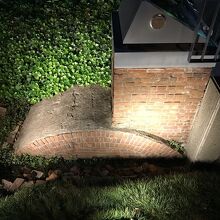 夜の散歩中に偶然出くわしました。かつてここを本拠地としていた居留地消防隊の防火貯水槽として建造されましたものの遺構となります。明治26年に作られたものとのことです。レンガ造りのアーチを今も見ることができます。