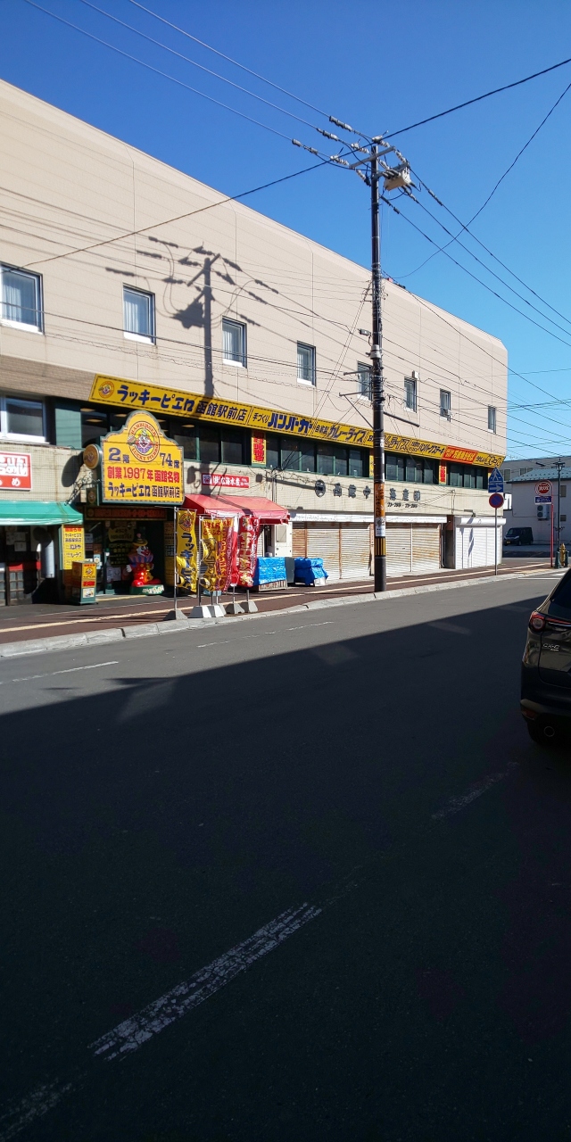 函館朝市の近くにあるラッキーピエロです。ラッキーピエロは函館市にしかない飲食店のチェーンで、ハンバーガーをはじめカレーライスやハンバーグもあり、メニューの豊富さにおどろきます。