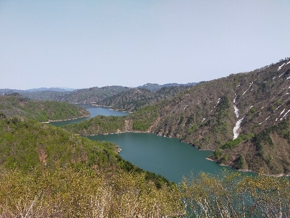 国道252号線の田子倉湖付近はかなりのクネクネ道です。そのクネクネ道を上りきった新潟県と福島県の県境にある六十里峠からの展望は、クネクネ道を上りきる価値あるものでした。雪解け水で満々とした湖と残雪の山、開通直後の五月がおすすめです。