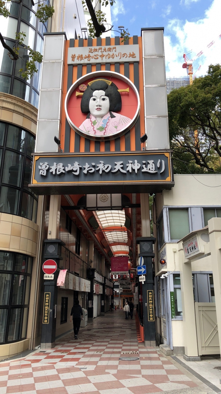 南はお初天神、北は扇町通まで続く、アーケード商店街です。全長約300m、道幅はあまり広くありません。ほとんどが飲食店、その中でも飲み屋さんが多いです。商店街の看板には、近松門左衛門・曽根崎心中ゆかりの地と書かれていました。