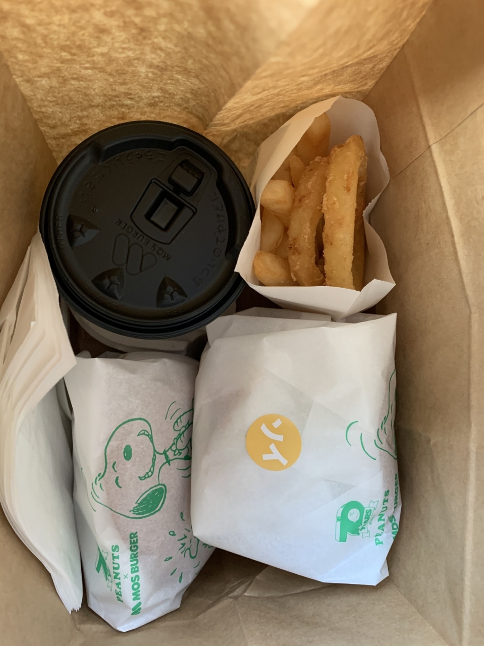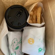 朝ご飯にモスバーガーをテイクアウトしました。朝10時30分までのモーニングメニューがあります。ソイ野菜モスバーガーと普通のモスバーガーを注文。セットドリンクが付いてくるので、好きなドリンクが選べました。