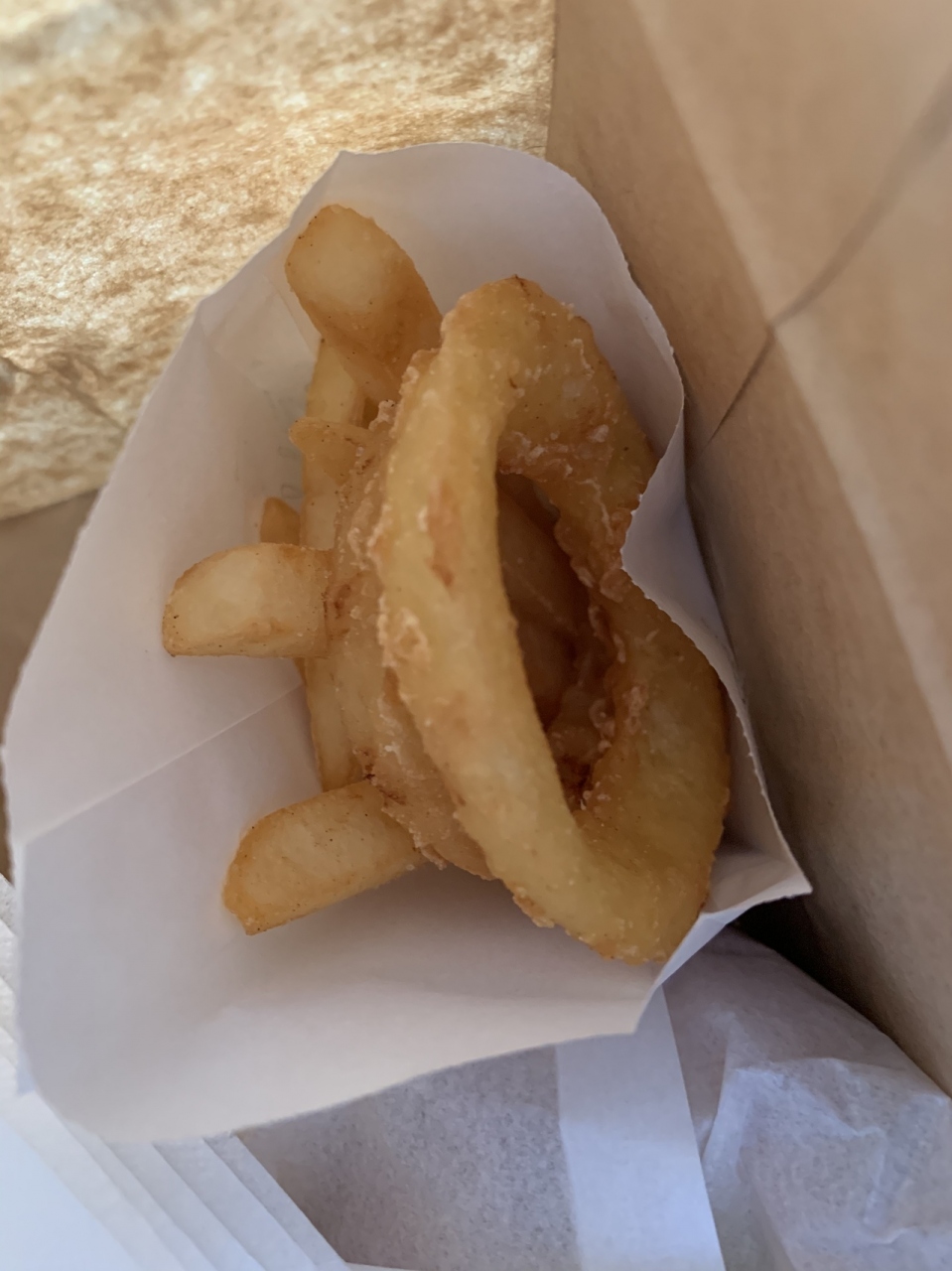 オニポテとメロンソーダをテイクアウトで利用しました。楽天ポイントが貯まっていたのでポイントで支払いしました。楽天ポイントはポイントで支払いをしてもまたポイントが貯まる仕組みなので嬉しいです。また利用したいと思います。