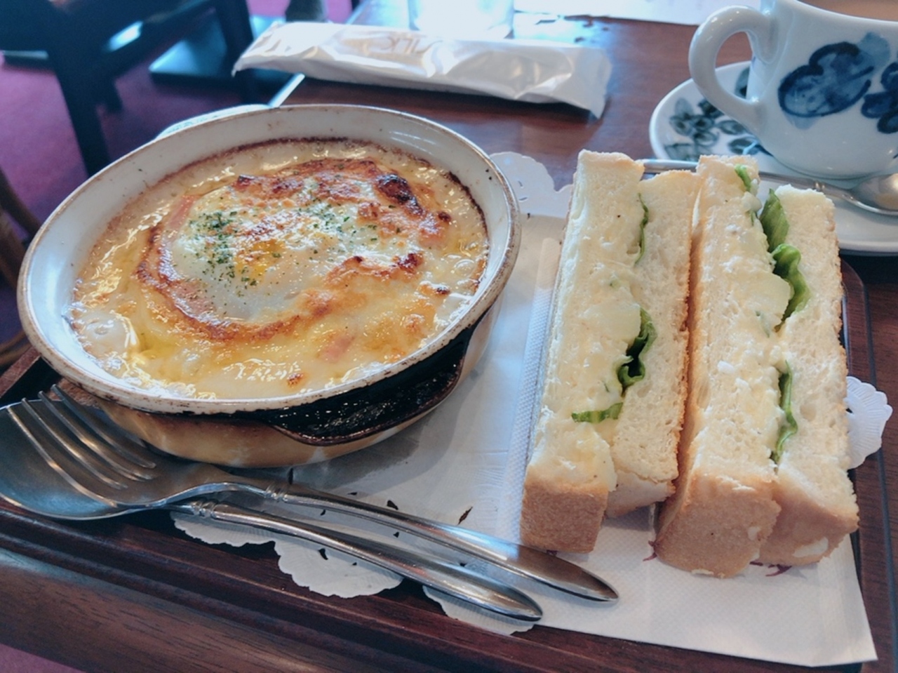 Bモーニングはこれにグツグツ出来立てのココットとポテトサラダのサンドイッチ。