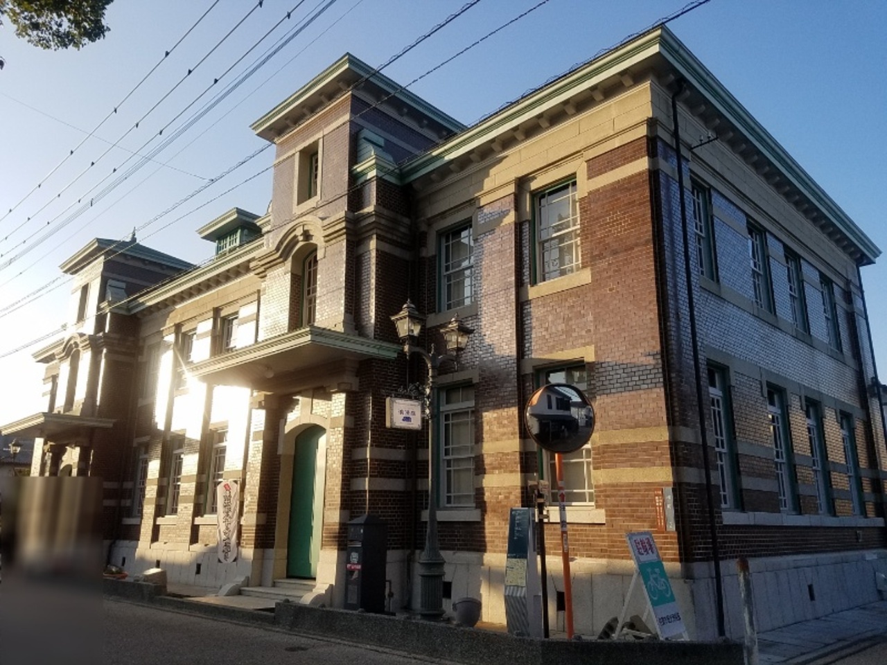 柳町通りにあります。明治時代に建てられた銀行で現在は観光スポットになっています。建物内部は広い吹き抜けになっていて洋風の窓に木製の柱や手摺などの装飾がレトロでいい雰囲気です。一階にはカフェもあるので柳町の散策の休憩にもちょうど良いと思います。