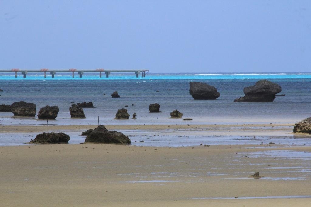 下地島空港の横には巨大な岩がたくさん転がる広い浅瀬が有ります。