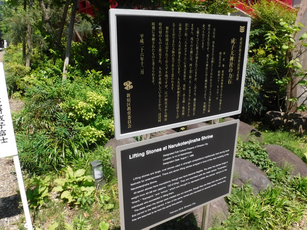 東京メトロ丸の内線の西新宿駅を出て青梅街道を中野方面に進んで行くと右手にある成子天神社内にこちらの力石はあります。
