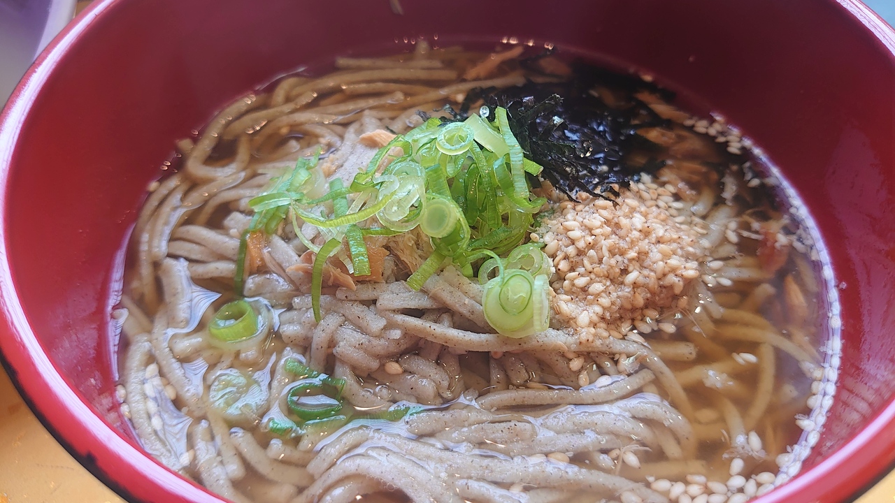 島根のそばというと出雲そばを思い浮かべますが、隠岐には隠岐そばというのがあると聞き、挑戦してみました。つなぎを使わない十割そばで温めて食べるのが隠岐流。麺は短くて切れやすく、たっぷりの白ごまと海苔がのっていて独特です。正直に言うとそんなにおいしくはありませんが、地元の食文化に触れられたので満足です。