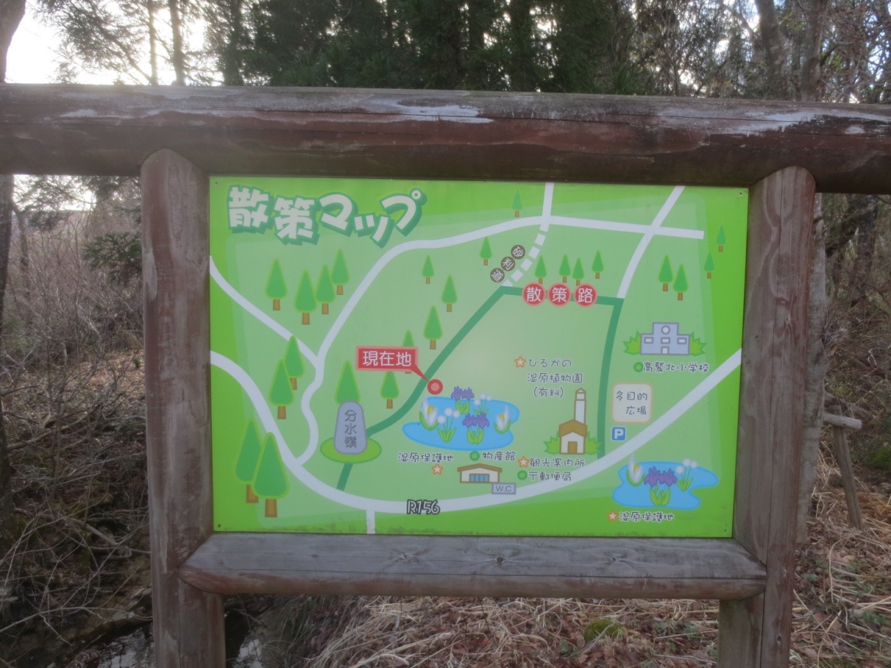 湧き水が太平洋と日本海へわかれていく様子がわかる場所ですが、この公園内に木の板を張った散策路も設けられていてちょっと一回りすることもできました。ちょっと時期がずれてしまっていたようですが、ミズバショウが少しだけ見られました。