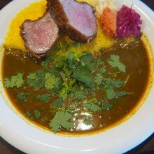 カレーは、鯛と鶏の和出汁に、スリランカ産のスパイスを調合していて、和風とエスニックの旨いとこ取り、といった感じ。大抵、そうした試みは料理に限らず失敗する事が多いが、このカレーに於いては、エスニックな香りが感じられる一方で、日本人の口に合うものに仕上がっていた。パクチーが、よりエスニック感を出している(パクチーが苦手なら、店員にそう伝えれば、トッピングされない)。