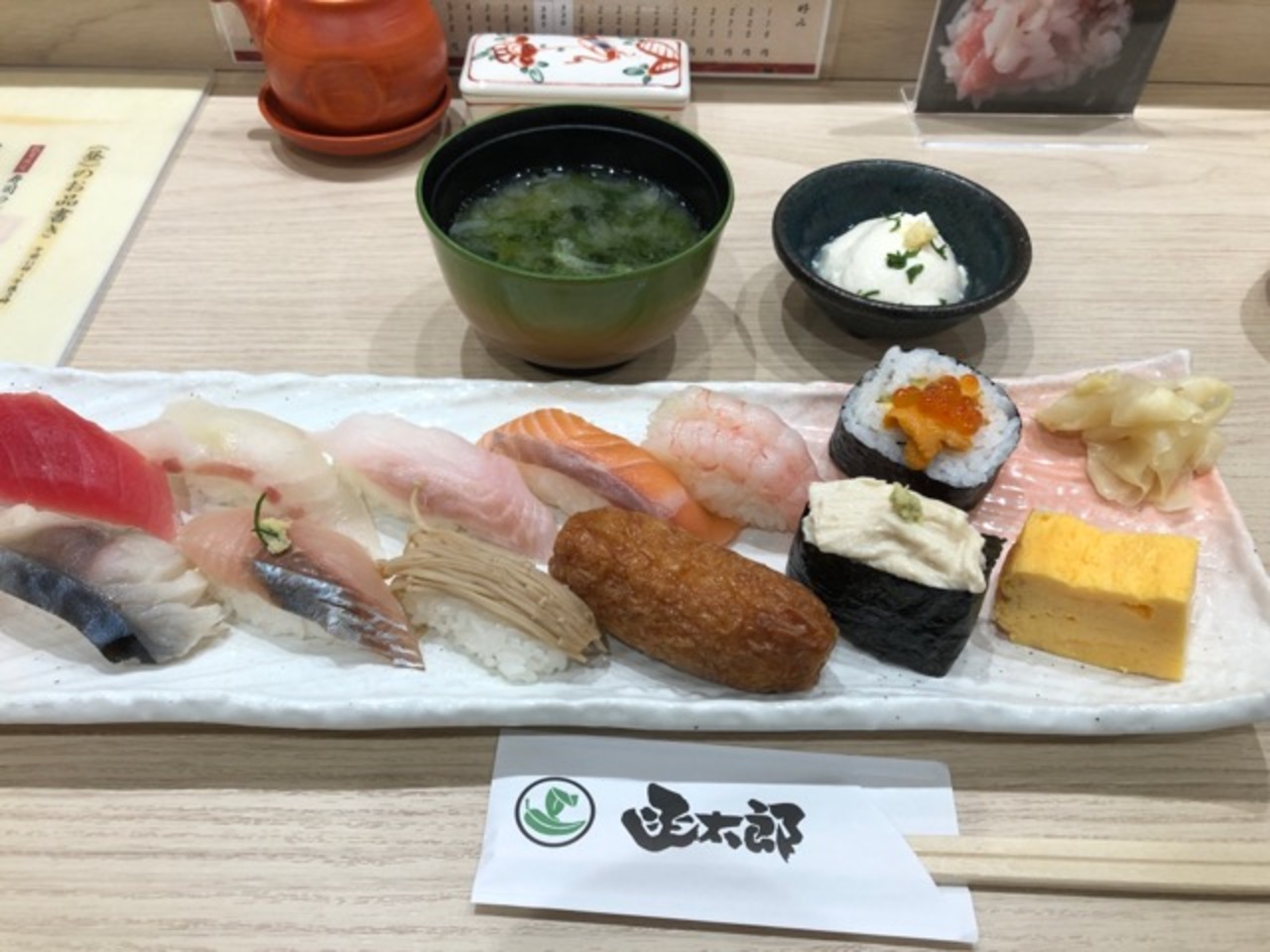 カウンター式の寿司屋さん、函館に回転寿司すしの本店があります。ここは日生ビルの地下、地下街通路から直接入ってこれます。ランチにお安いセット1日20食限りがあり、普通は並ぶらしいですが、コロナ禍の中の平日であったためかすんなり格安ランチを食べました。12カンの握りと豆腐、味噌味が付いて1100円です。板前さんが握ってくれるからいいと思いますが、ネタはそれなりです。
