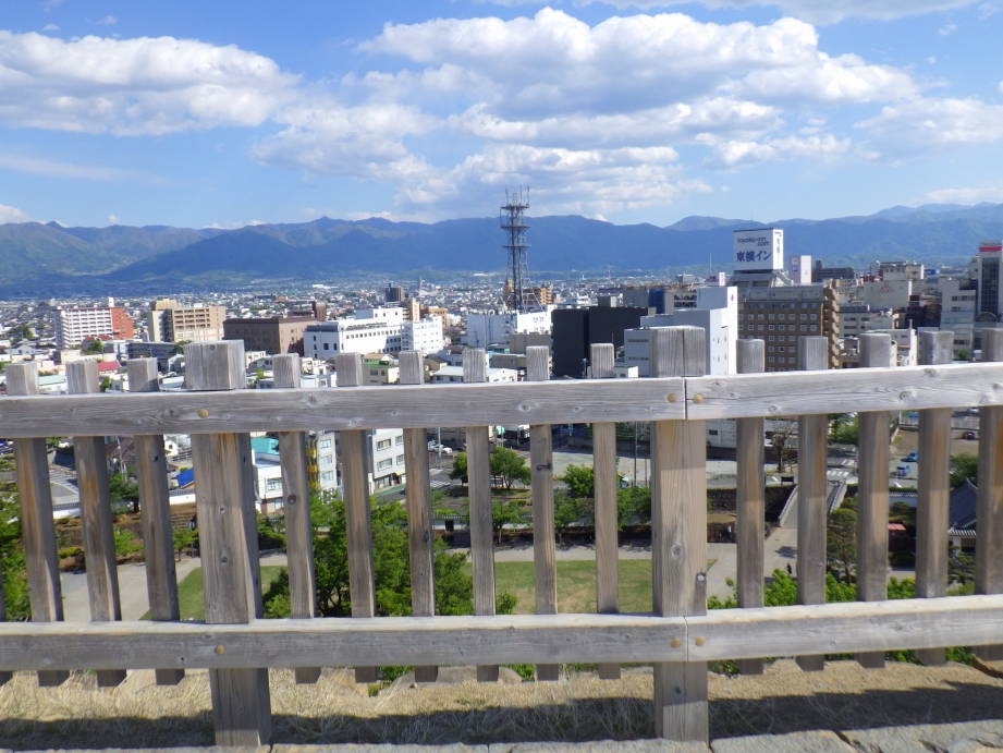 「甲府城 本丸櫓跡」の前からさらに上がっていくと、「甲府城 天守台」に着きました。天守は残っていませんが、360度見渡せる展望台になっていて、展望台からは甲府城下と甲府の町並みを綺麗に見ることができました。