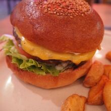 アメリカンサイズのハンバーガーとあって、食べ応えが。