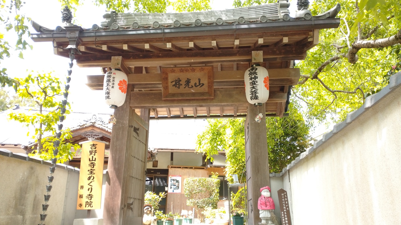 吉野山寺宝めぐりの一環として、初めてお参りしました。桜本坊の道路を隔てたところを降りたところにありました。御本尊は薬師瑠璃光如来でした。御朱印と緑の散華をいただきました。無人だったお寺で頂いた御朱印と散華を御朱印帳に貼ってくださいました。