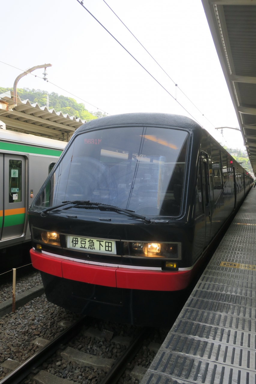黒船をイメージした,黒い電車です.リゾート21として使われていたもので,海側は海側に向いた座席,山側は一人がけシートの向かい合わせになっています.