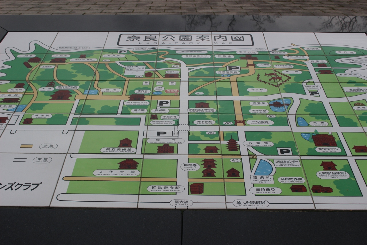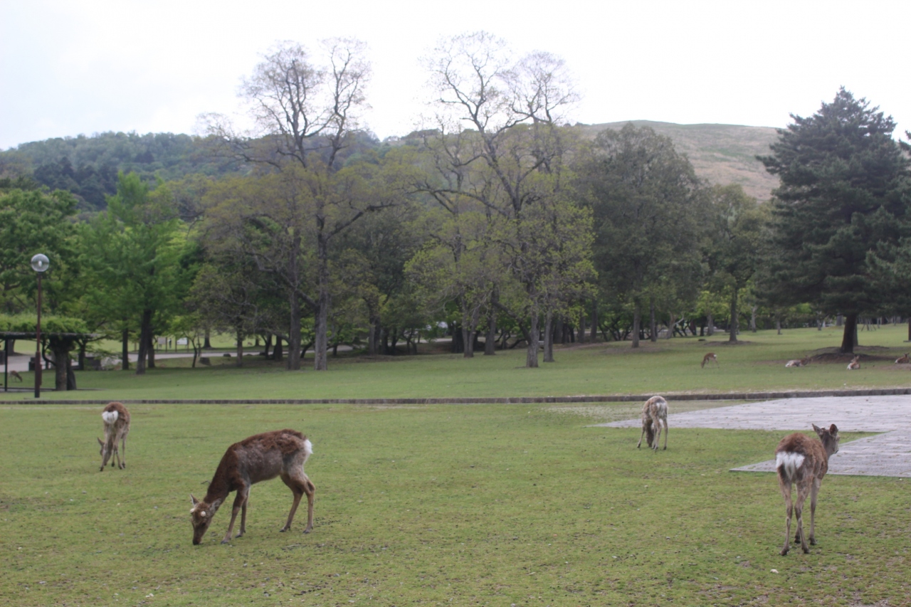 奈良中心部、東大寺、興福寺などを含む一帯。野生のシカがいます