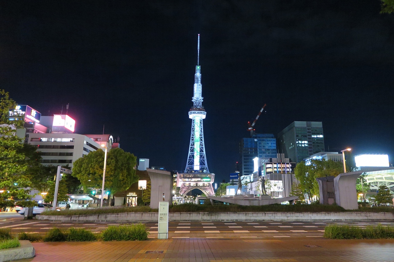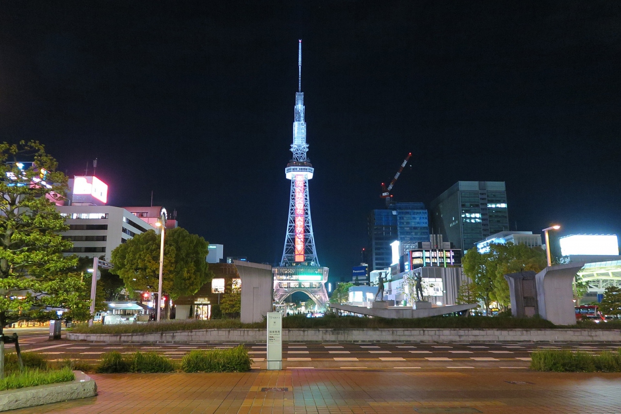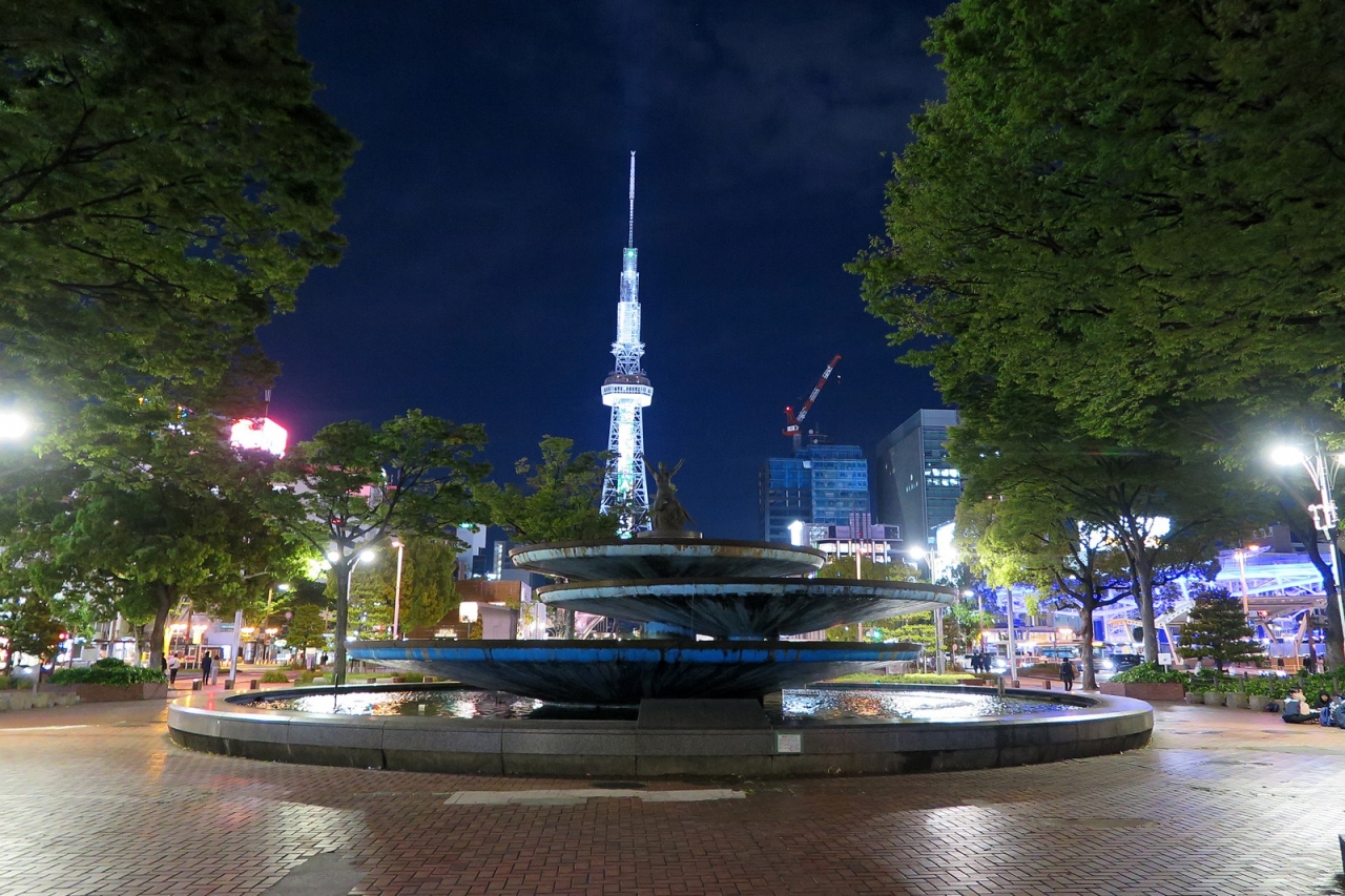 日本で最初に完成した集約電波塔ということは私も知っていたのですが、弟分である東京タワーや札幌テレビ塔などに比べて地味な印象はぬぐえませんでした。しかし今回、久しぶりに夜のテレビ塔前を通ったのですが、美しくライトアップされた姿を目にして印象が変わりました。LED照明が伝言板のように使われていることも分かりました。サプライズに良いですね。