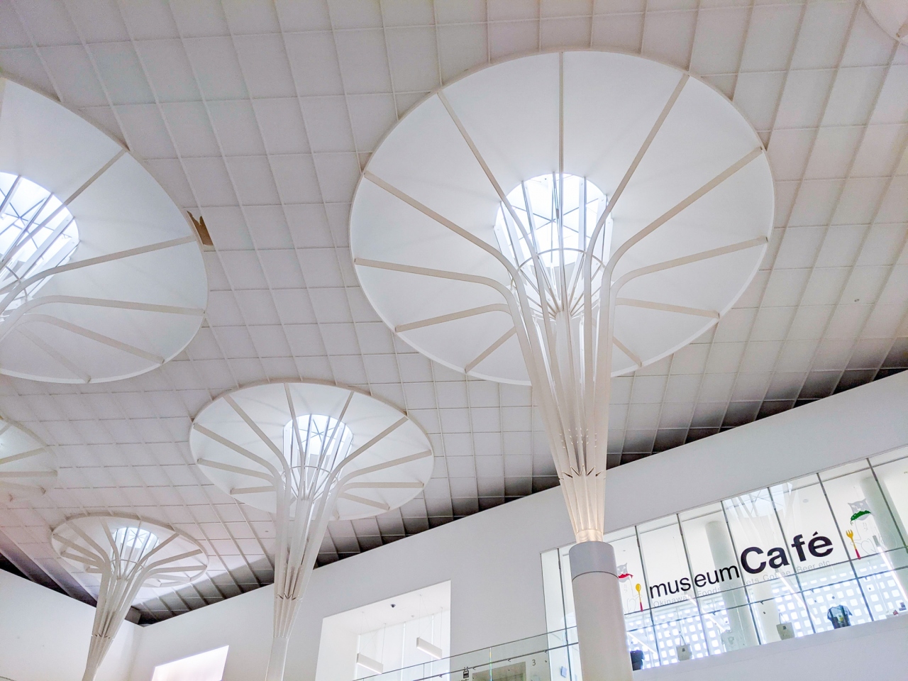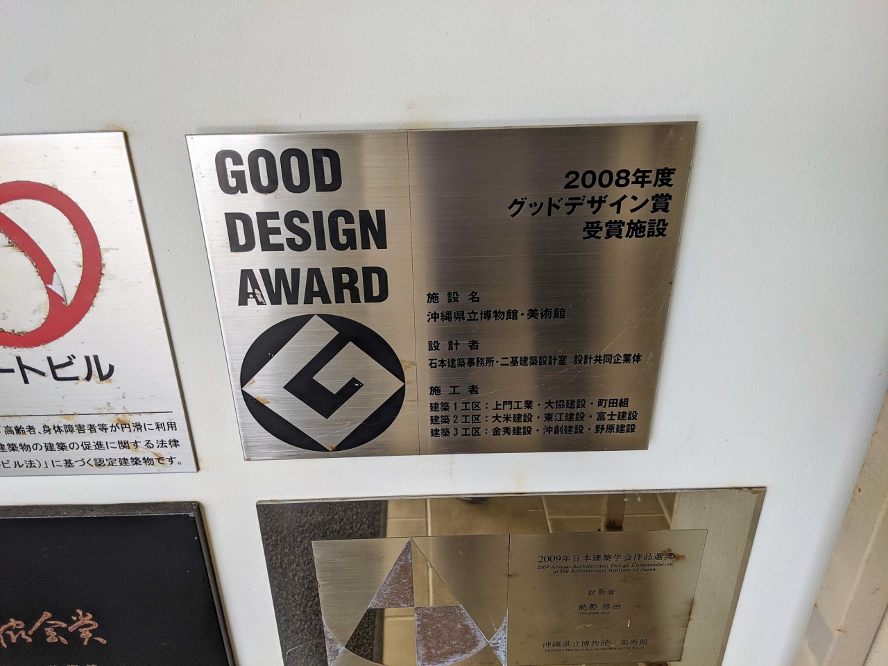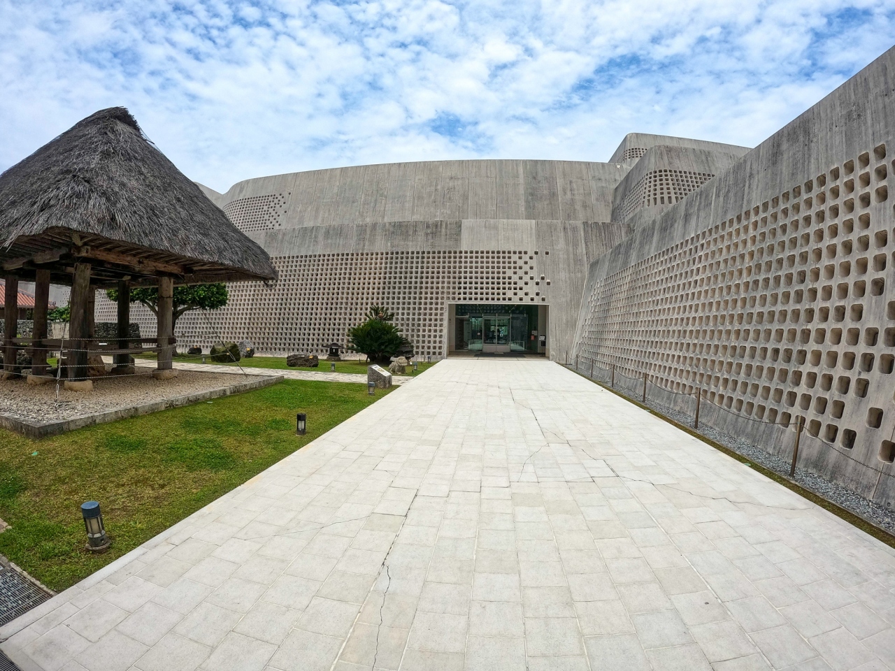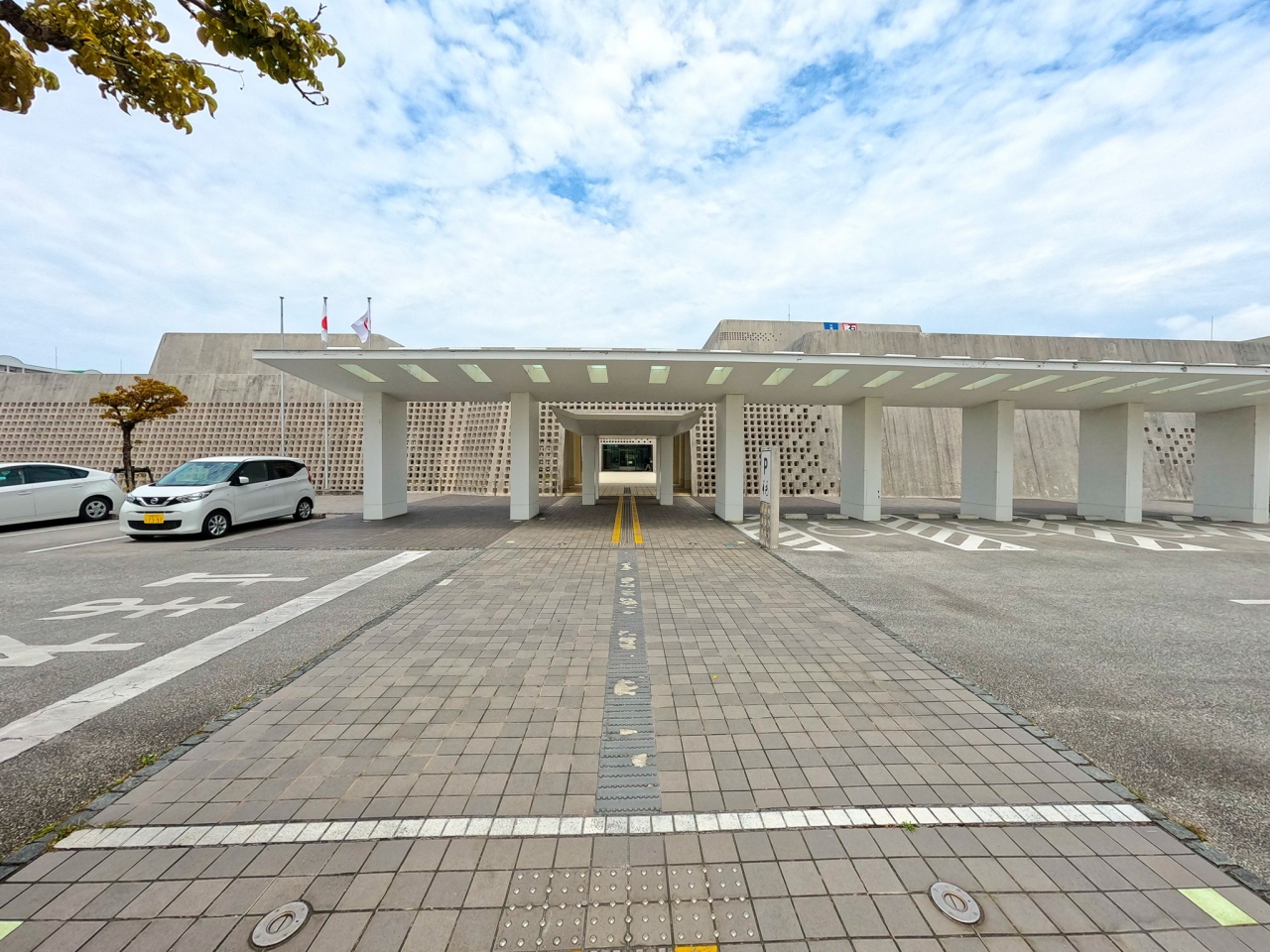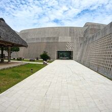 沖縄・ゆいレール「おもろまち駅」から徒歩10分。「建物好き」には気になる建物、「沖縄県立博物館・美術館」に行ってきました。外部は強い日差しによる熱を低減するため外壁の外側に外壁を設ける構成。外観は緩やかなカーブで琉球石灰岩の素材感などは沖縄のグスク(城)をイメージしているそうです。もう少し高いところから全体を見たかったのですが、見られるような建物が無く・・・ちょっと残念。建物に入ったエントランスホールは木陰のオアシスをモチーフとしているそうで、外見とは違い明るく高く開放的な空間が印象的でした。もちろん博物館、美術館も見学しましたが、仕事が終わってからの見学だったため、帰りの飛行機までの時間があまり無く・・・また今度、ゆっくり来たいと思います。