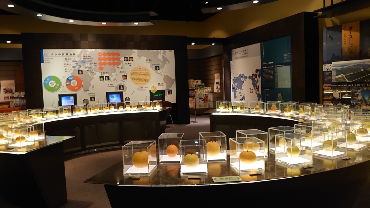 とても立派な建物です。有料(といっても300円)ではありますが、見ごたえがあります。知らない梨もたくさんあって楽しかったです。外に出ると梨の木もありました。なんといっても春に鳥取の珍しい梨を試食できたのには大喜びでした。カップに入った3種類のみずみずしい梨をおいしくいただきました。大人もこどもも楽しめる施設です。