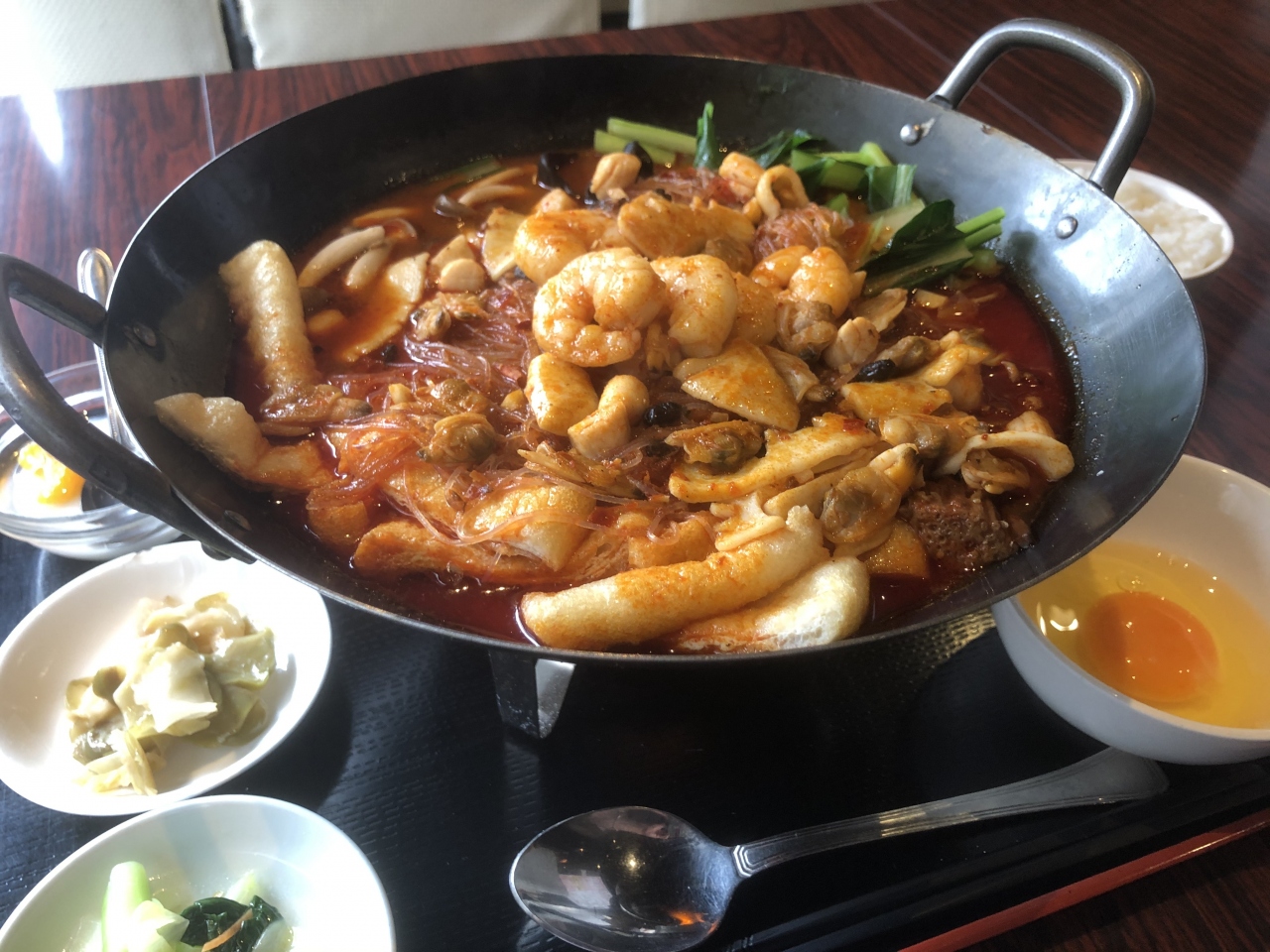 海老、イカ、アサリの海鮮に、野菜、きくらげ、大量の油あげ、はるさめが入っていて、ボリュームたっぷり。