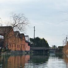 柳川の川下りの途中、舟から眺めました。赤いレンガ造りの建物で、現在も鶴味噌醸造の味噌蔵として使用されているとのことです。柳川の歴史的景観形成に大きく寄与しているとして、2000年に国の登録有形文化財に指定されました。水郷に架かる橋が建物と合わさって趣があり、柳川を象徴する風景として有名な観光名所のひとつです。