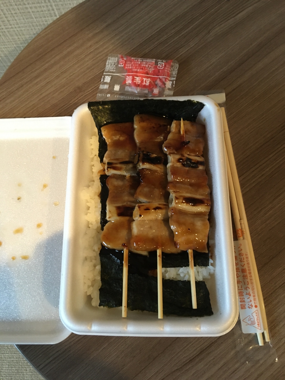 ご飯の上にのり、そしてやきとり。