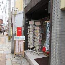 眼鏡橋の通りから1本山方面の通りにあります。ブックと店名についているので本屋さんですが、長崎関連の本を主に扱っています。普通の本はなかったです。入口近くには長崎各地の絵葉書(写真ではない)が販売しています。