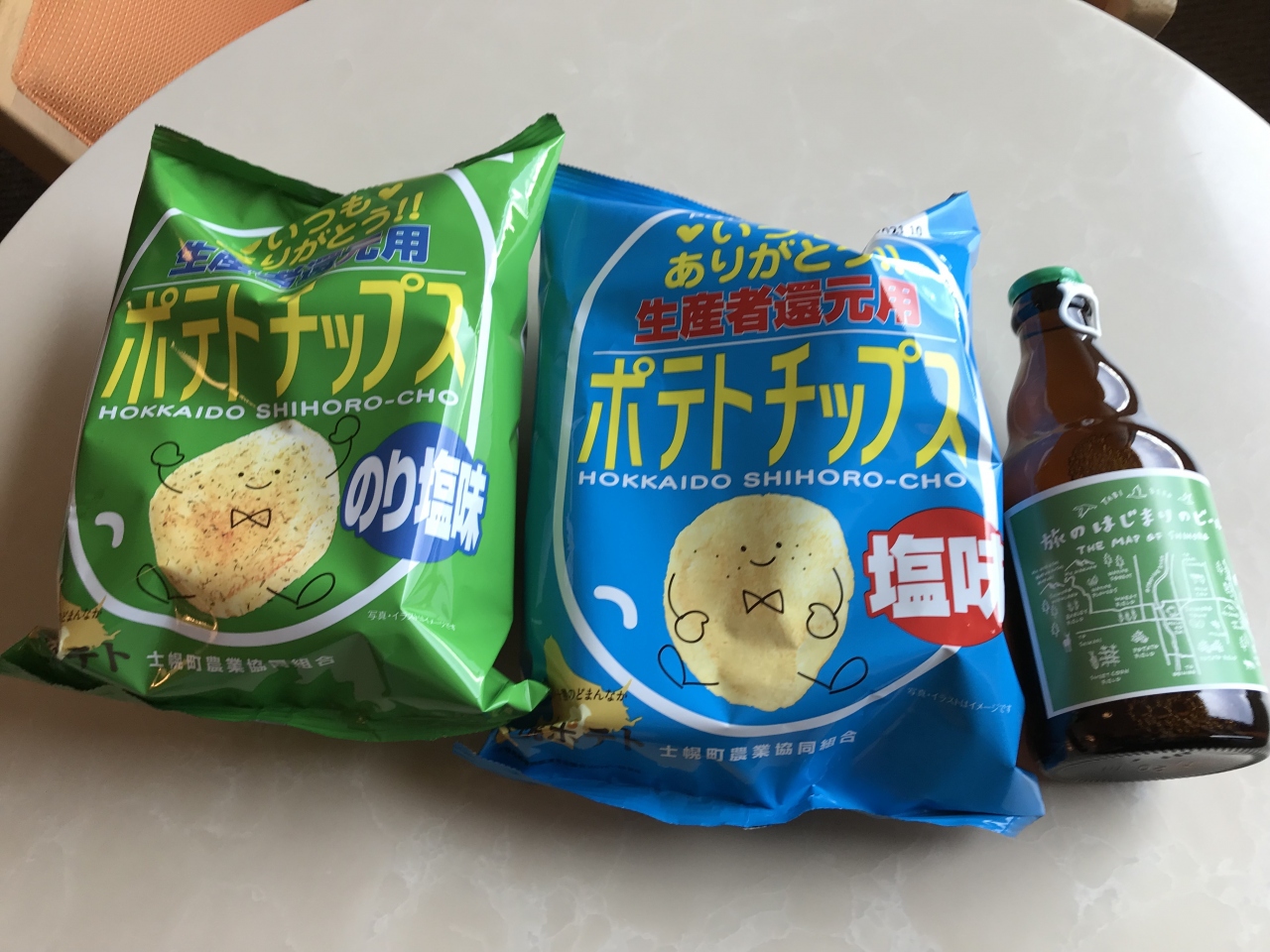 二度目の訪問です。道の駅ピア21しほろと言えば、士幌町限定のポテトチップスが有名です。今回も、のり塩味と塩味を購入。また、「旅のはじまりのビール」というクラフトビールがあったので購入しました。士幌町で摂れた大麦麦芽を100%使用しているのだそうで、飲みやすくて美味しいビールでした。
