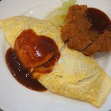 オムライス&チキンカツセットは、オムライスセットの1種。