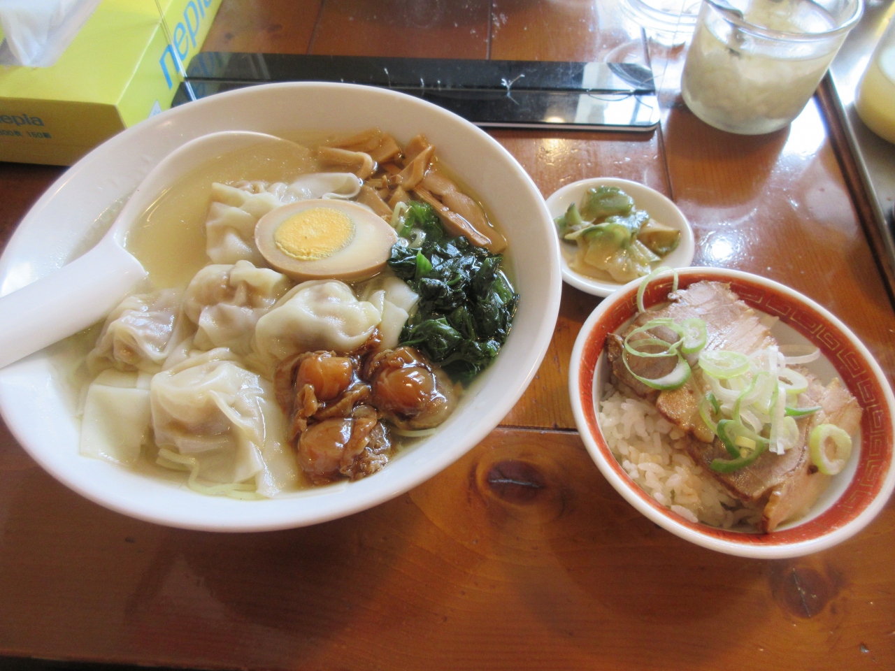 平日午前きれいになった大塚駅前を見てから昼食に利用しました。1階に厨房と6人座れるカウンター席が、2階に6テーブル席があります。平日11時半過ぎ、2階席に案内されました。XO醤ホタテ旨味雲呑麺にミニ煮豚飯付きと清湯海老雲呑麺を注文しました。XO醤ホタテ旨味雲呑麺のスープがあっさりしていて、濃い味のホタテがアクセントになって美味しかったです。薄切り煮豚2枚がのっているご飯はザーサイで食べました。清湯海老雲呑麺は海老たっぷりの雲呑に今回は酢をかけて食べてみました。今日は暑い日だったので酢が美味しかったです。以前田町店を利用してわさわさした雰囲気が気に入り、大塚店を利用しました。こじんまりしていますが、常連客が多いようで人気店なのがわかりました。