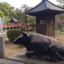 菅原道真公の生まれ年が丑年であることや、御本殿の聖地が牛にご縁のあることから、境内には11体もの銅牛・石牛が祀られています。江戸時代から、頭をなでると知恵を授かるといわれ、訪れた時も参拝客が行列を作って撫でていました。自分と牛、それぞれの頭を交互になでるのが正しい祈願の仕方とのことです。