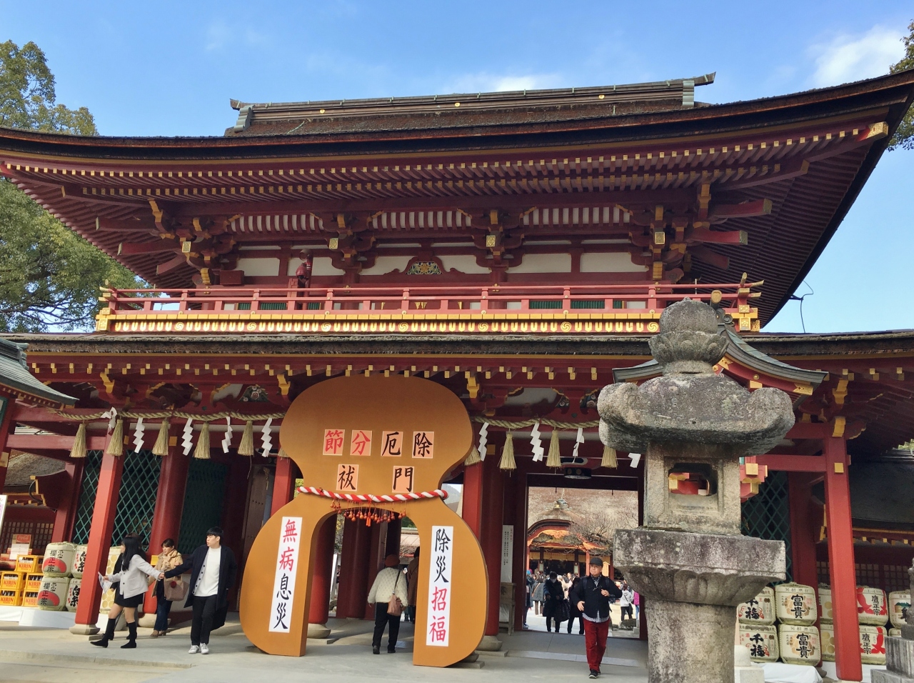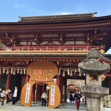 本殿の手前にある、朱塗りの門のことです。現在の楼門は、1914年に再建されました。朱塗りが鮮やかで大きく立派な門です。太鼓橋側から見ると屋根が2つありますが、本殿側から見ると1つだけという、太鼓橋側と本殿側で形状が異なる珍しい造りをしています。門の形に注目していなかったので、写真を見て気づきました。