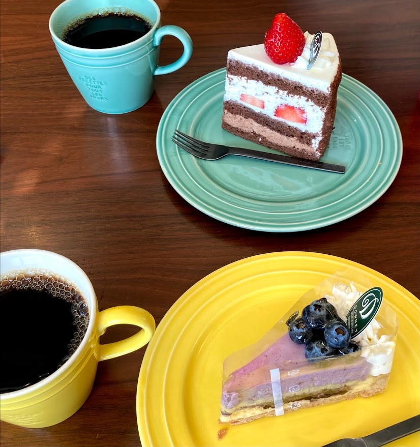 ケーキのショーケースは、種類が少なく残念でしたが、その中から、ブルーベリーダブルチーズと苺のショコラショートにしました。なかなか美味しかったです。