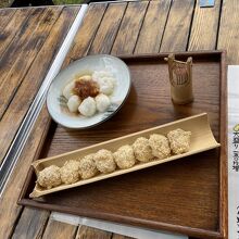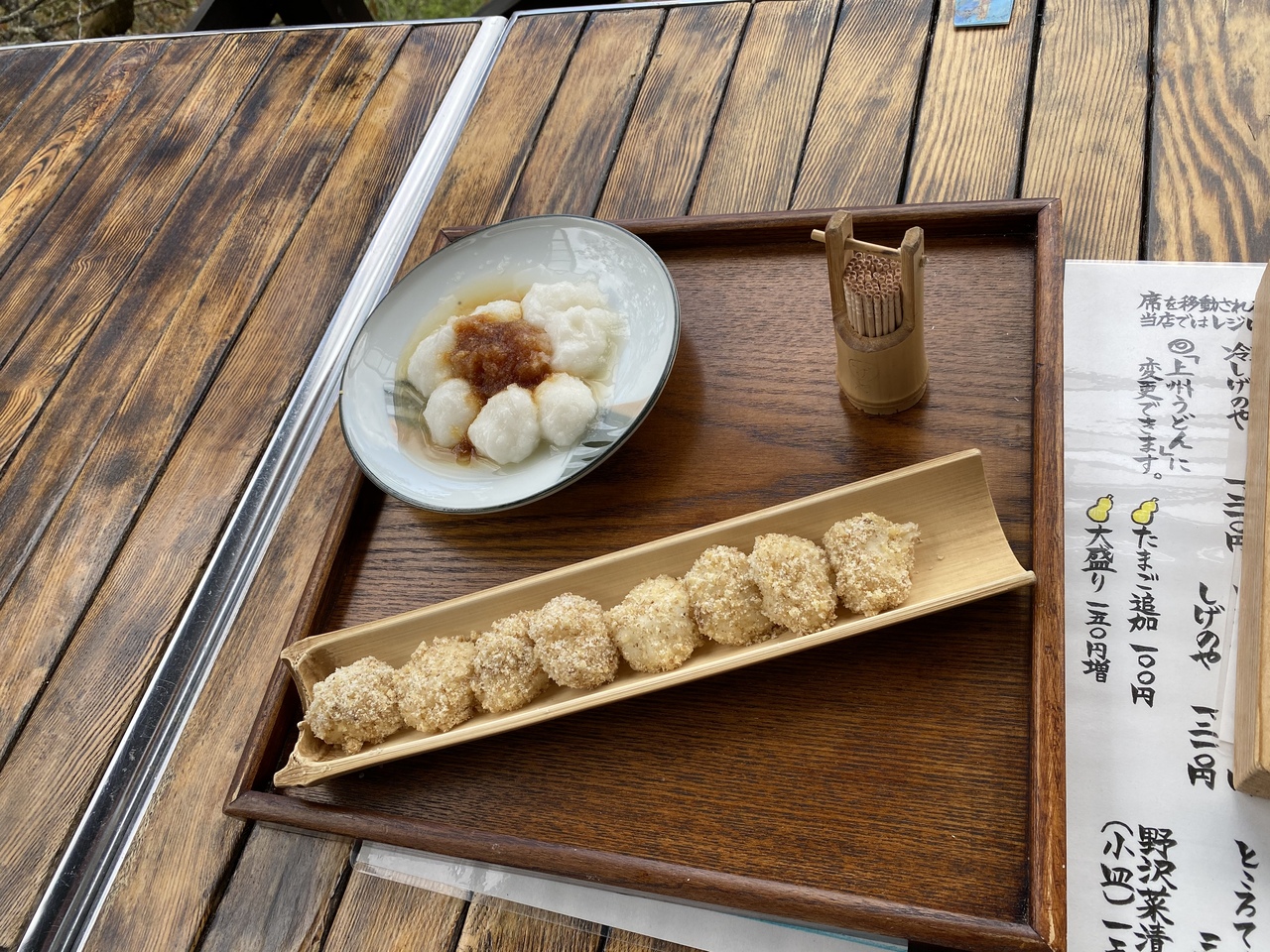 見晴らし台へハイキング、熊野皇大神社お参り後休憩で寄りました。名物のからみ餅と胡桃餅(各¥500)と山菜蕎麦(¥880)を注文。お餅は柔らかくくるみも香ばしく美味しいです。お蕎麦はハイキングで汗をかいた後だったのか、出汁が優しく薄くちょっと物足りなく感じました。