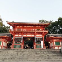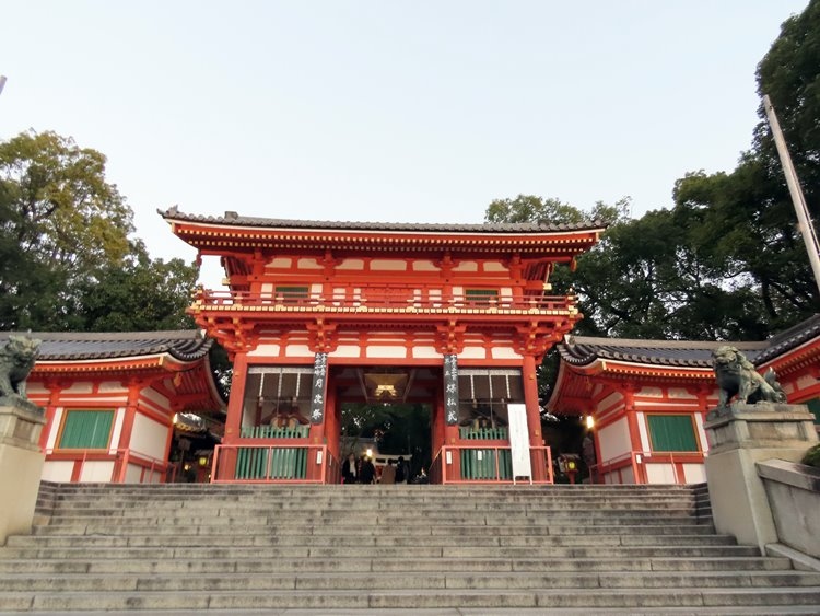 東大路通り沿い、四条通りの東詰めで京都屈指の人気スポット、八坂神社のシンボルともいえる楼門です。2回とも夕方にかけての時間帯に訪れましたが、いつも賑わっていて、写真を撮っている人、待ち合わせをしている?人が多いようです。