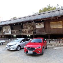 西楼門をくぐると左手にある大きな倉庫のような建物です。たくさんの絵馬が奉納されているようですが、建物の前面が関係者の駐車スペースとして使われていて、絵馬堂そのものの鑑賞もできず、少し残念な気がしました。