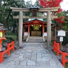 西楼門をくぐると正面に疫神社の右側に並んでいる末社です。祭神は導きの神さま、猿田彦命と、芸能の神さま、天鈿女命が夫婦で祀られています。人の流れは楼門から本殿へ流れていくので、八坂神社の賑わいの中でもこのあたりは割とひっそりでした。