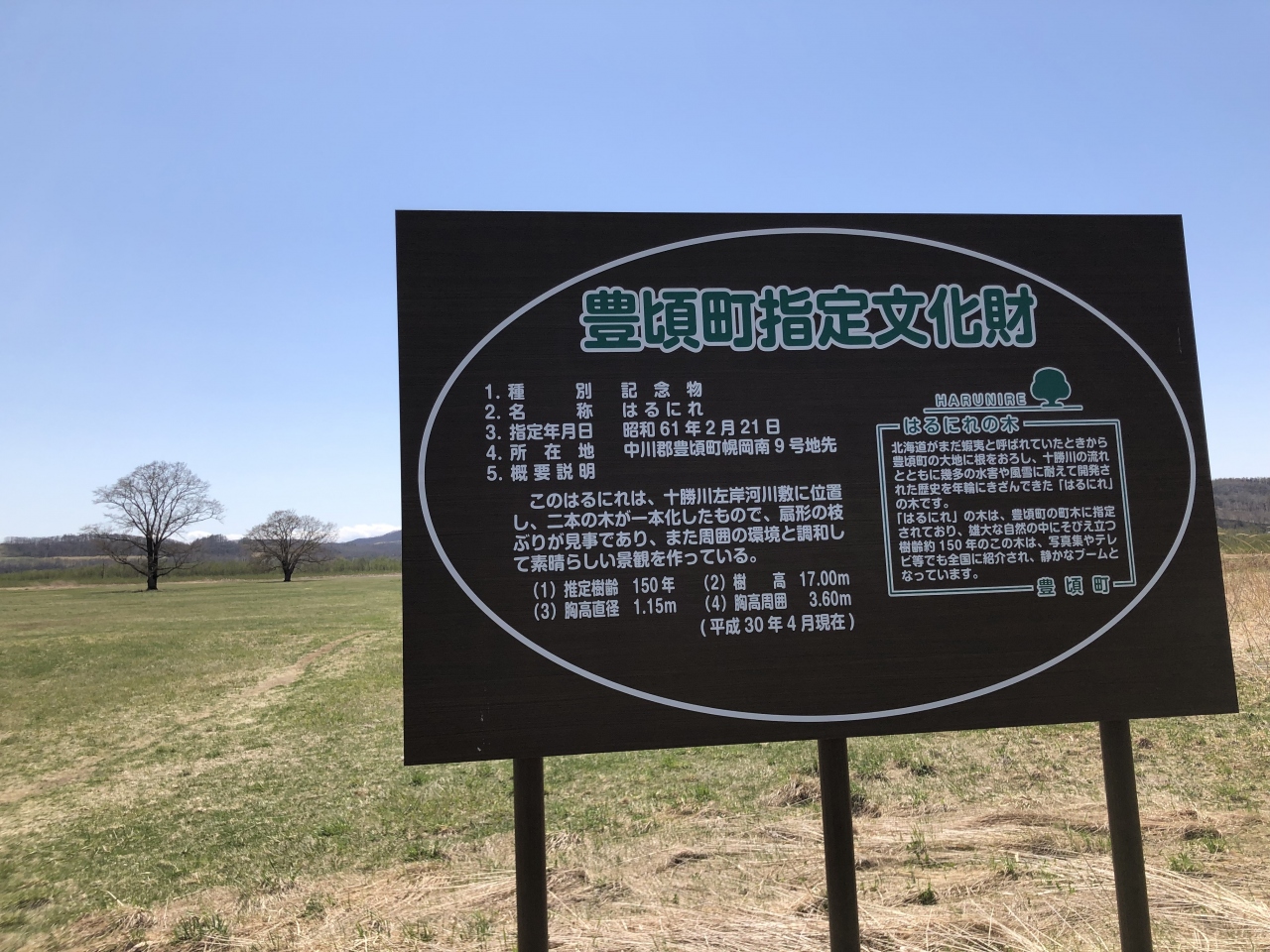 豊頃町のシンボルになっています。十勝川の河川敷にあり、土手からハルニレの木までは、結構歩きました。この時期は、葉っぱがなくて、パンフレットなどで見た青々とした木というイメージとは少し違いました。
