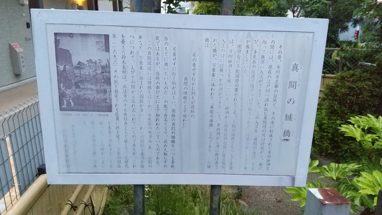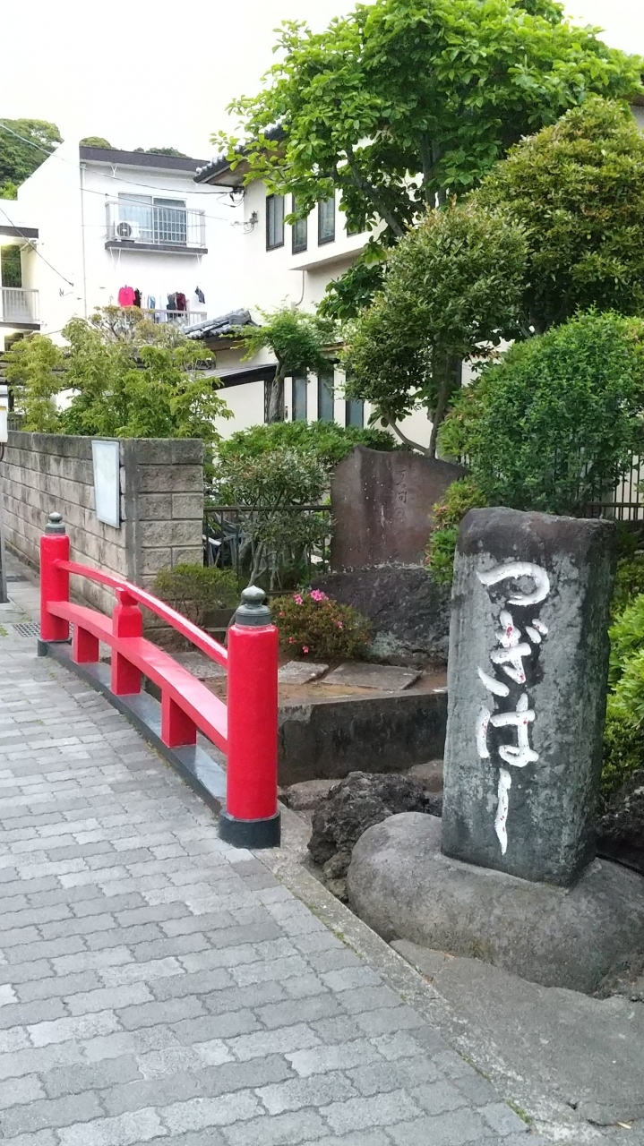 JR市川駅から真間山に通じる大門通り、真間川と石段の間にある赤い欄干の橋です。