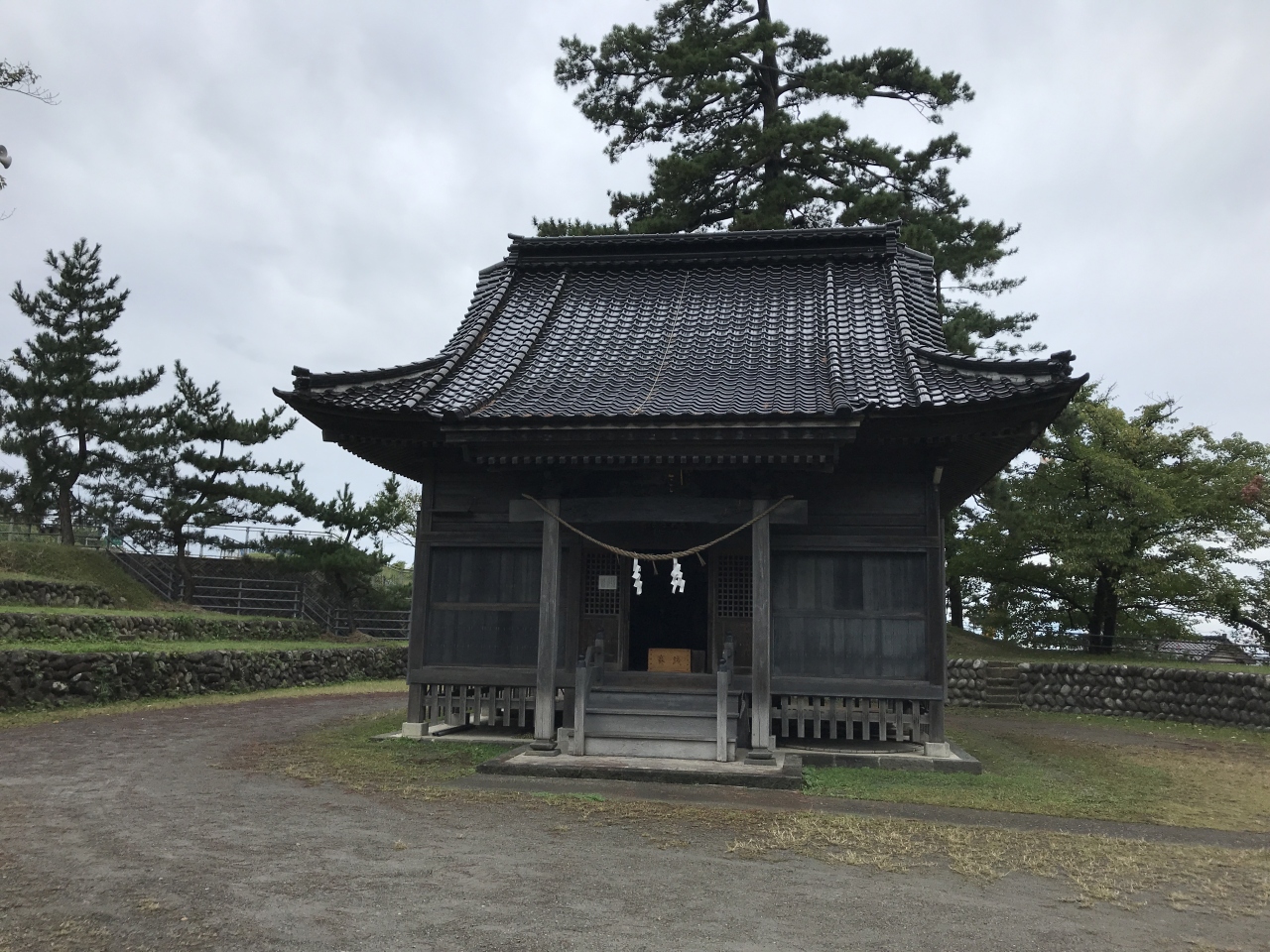 能生の弁天岩近くにある神社でした。拝殿は藁ぶき屋根の立派な建物で、文化財として指定されているものでした。海辺の近くで日本海の強い海風にさらされているのにしっかり年代を重ねている社殿は力強く感じました。