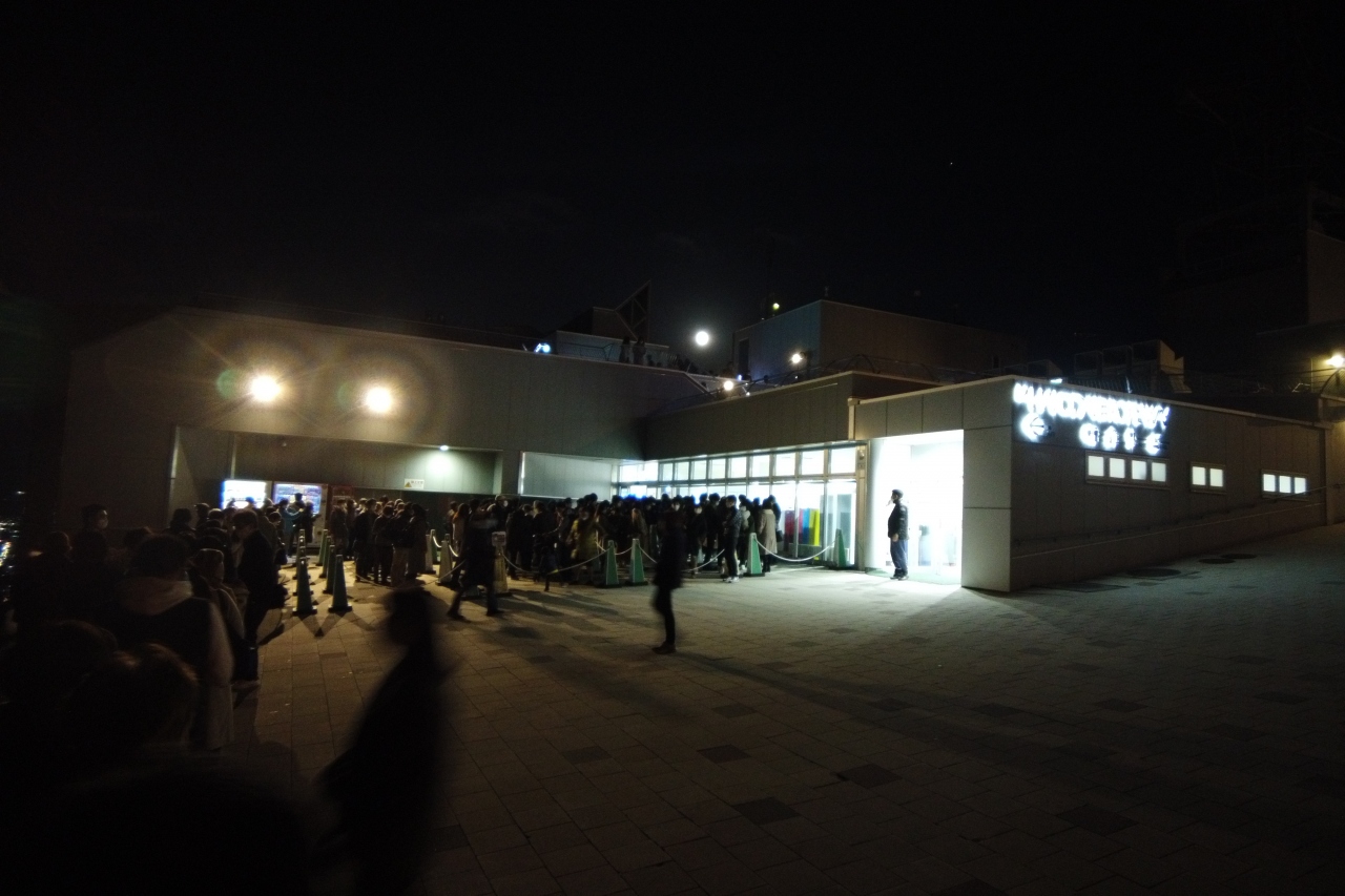 山頂駅からロープウェイに乗車する列は、展望台の建物外まで並ぶ長蛇の列。