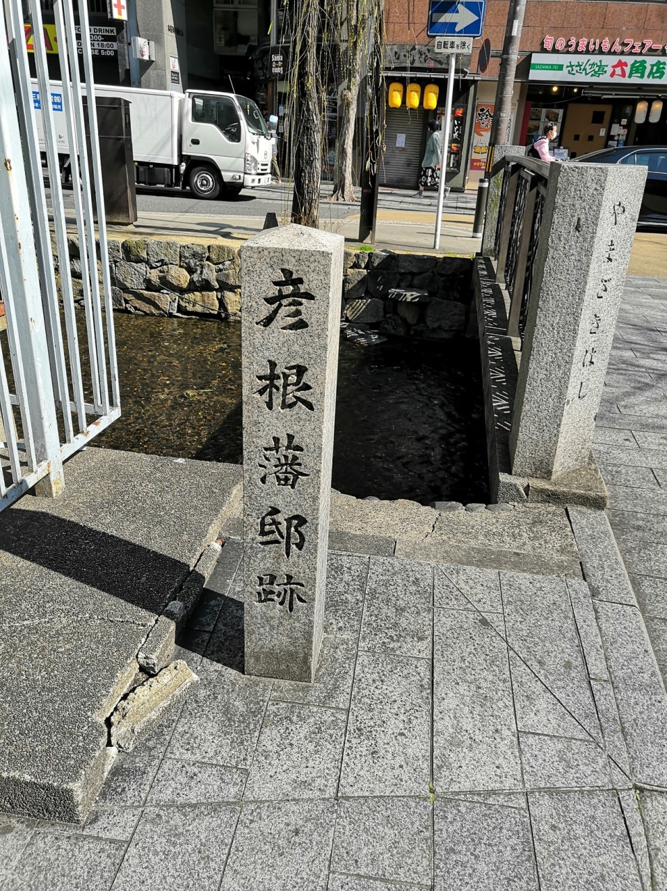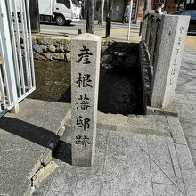 高瀬川にかかる山崎橋という橋のほとりのあります。名前のままですが、この近辺に彦根藩の京都における連絡事務所のような役割を果たした場所がありました。跡地の面影がないのは仕方ないですがせめて説明でもあればなあとは思います。
