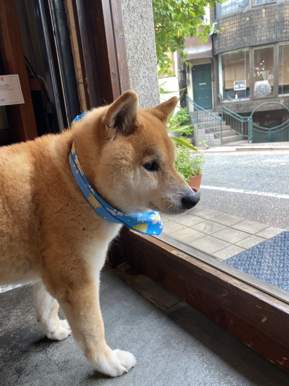 看板犬として柴犬がいます。ドアを開けると、席まで案内してくれました。お触りは禁止の様子。